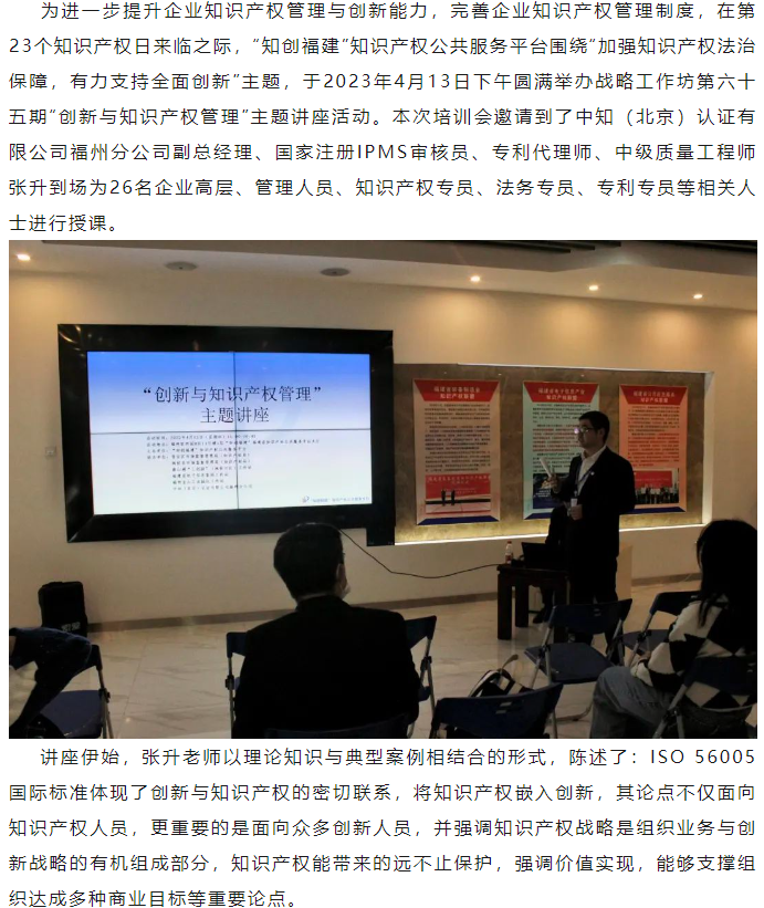 “创新与知识产权管理”主题讲座于“知创福建”平台顺利举行
