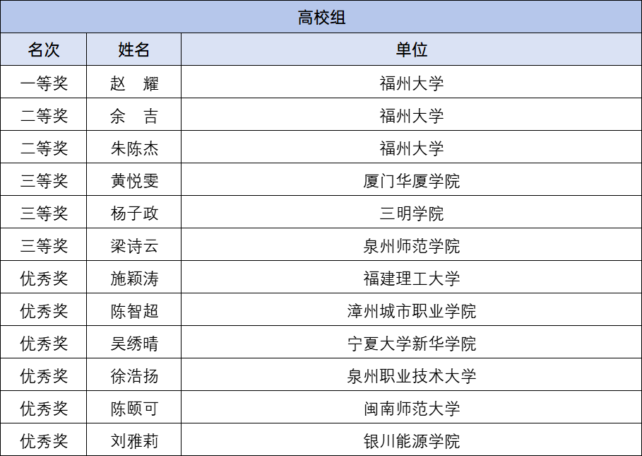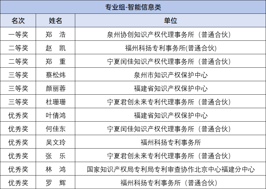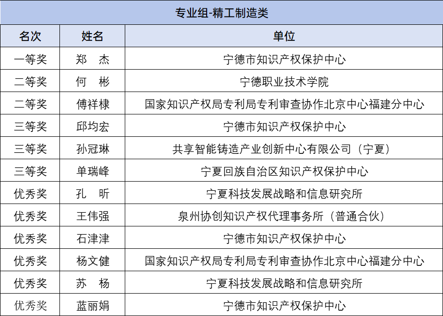 最终,来自宁德市知识产权保护中心的郑杰和泉州协创知识产权代理事务所的郑浩分别摘得专业组精工制造类和智能信息类桂冠,来自福州大学的赵耀摘的高校组桂冠。