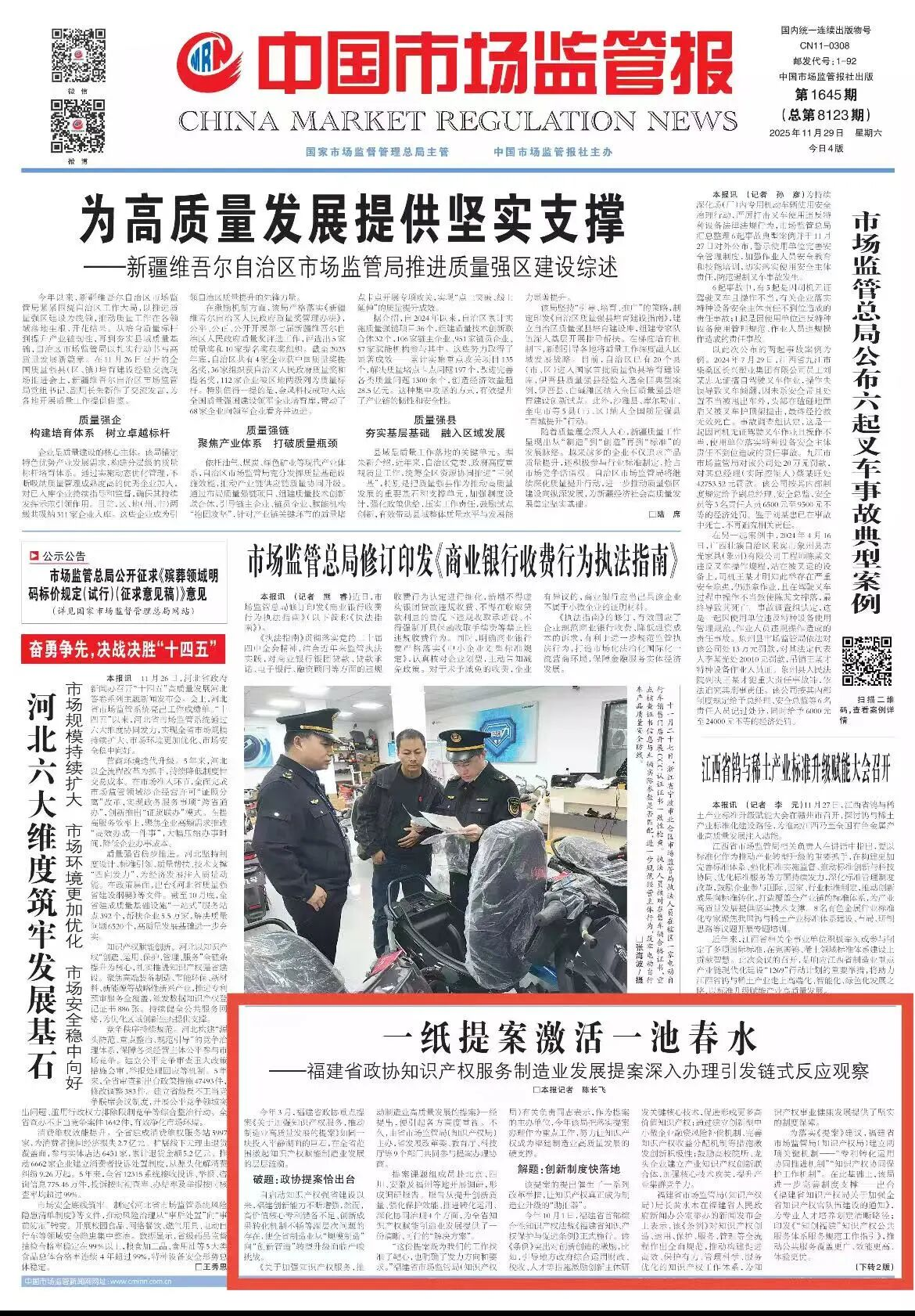 从一纸提案的精准破题到政策体系的不断完善,再到经营主体的真切获得感,福建正以生动的实践演绎着一场知识产权赋能制造业高质量发展的链式反应。这池被激活的春水,正汇成推动福建从“制造”向“智造”跨越的奔涌浪潮。